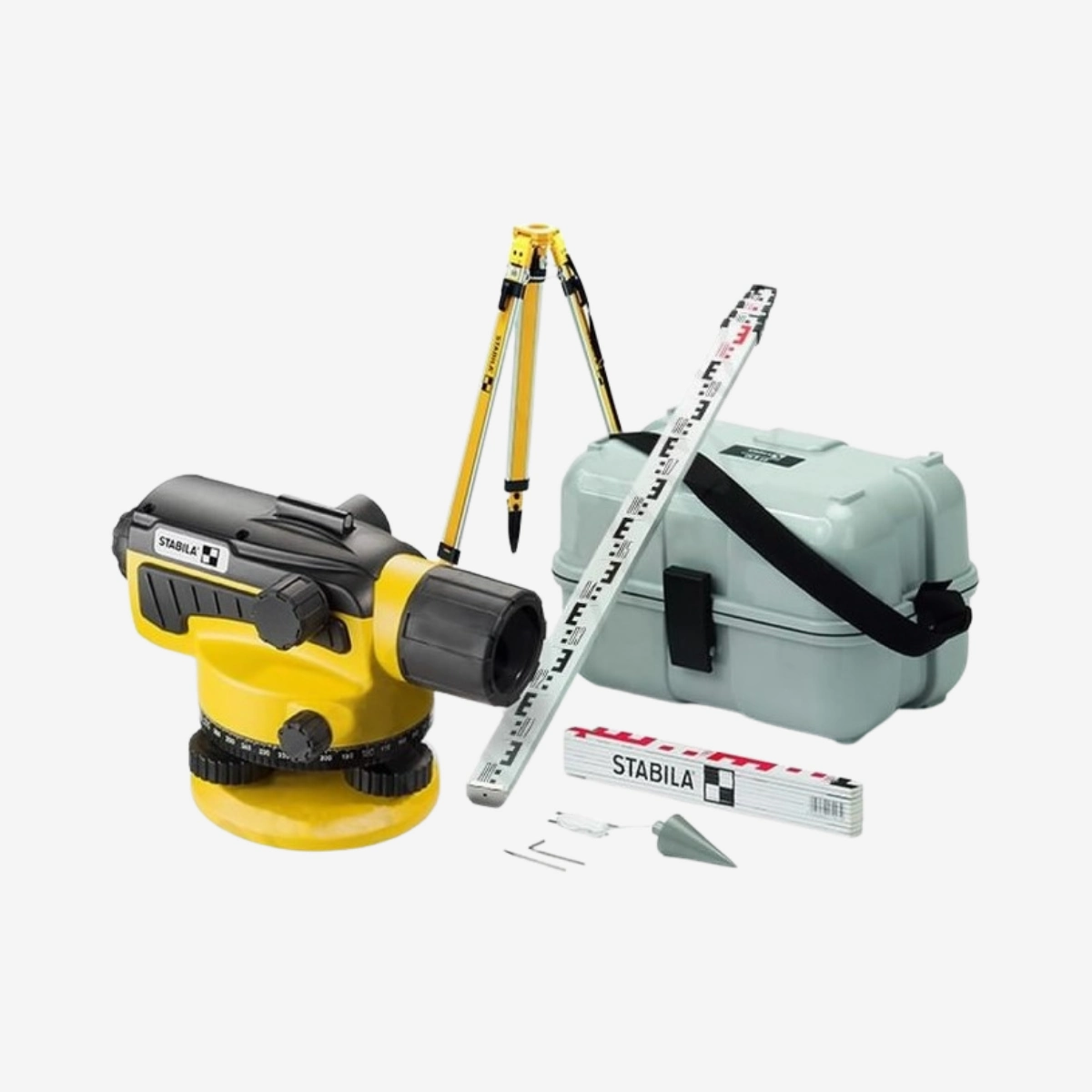 - STABILA 18460 – OLS-26 SET – Přístroj nivelační přesnost 2,0mm/1 km, zvětšení 26x SET stativ BST-S nivelační lať 5 m TML-5B.